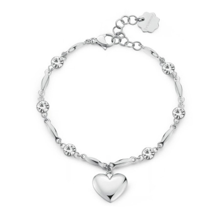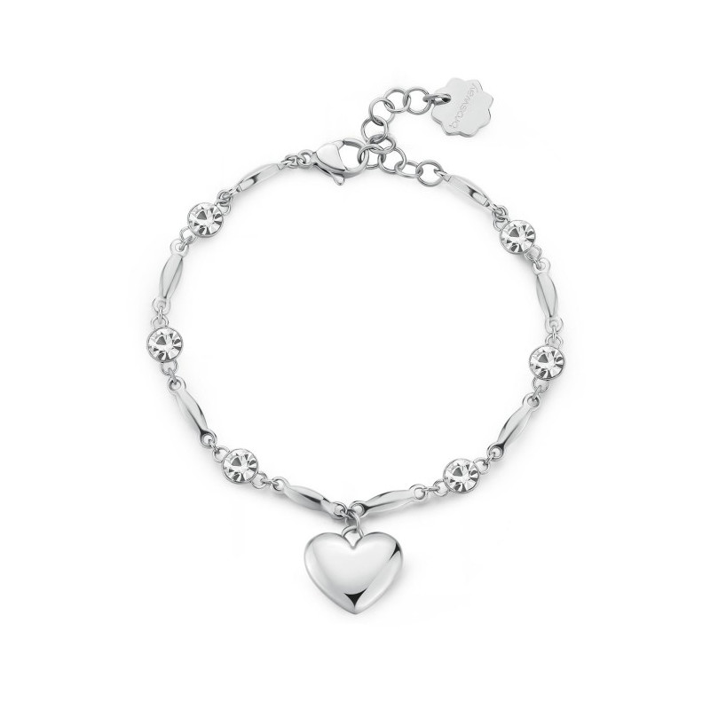 Descrizione: bracciale settori acciaio anallergico - cristalli bianchi - simbolo cuore - chiusura a moschettone - misura regolabile da 16 a 18 cm