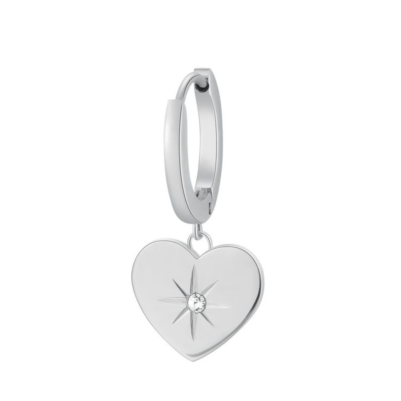 Descrizione: mono orecchino cerchio acciaio anallergico - simbolo cuore - chiusura a scatto