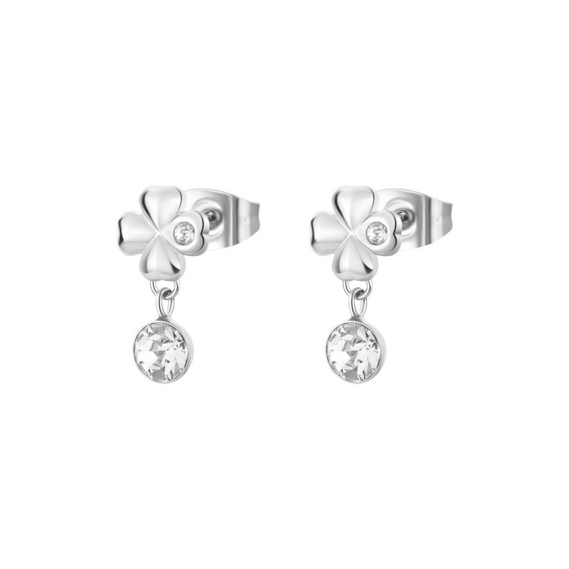 Descrizione: mono orecchino pendente acciaio anallergico - simbolo quadrifoglio - chiusura paletto