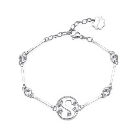 Descrizione: bracciale a settori in acciaio anallergico - cristalli bianchi - simbolo lettera dell'alfabeto - chiusura a moschettone - misura regolable da 16 a 18 cm