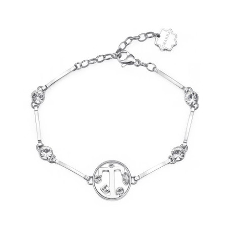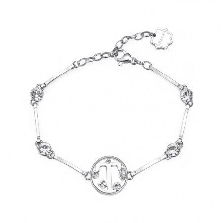 Descrizione: bracciale a settori in acciaio anallergico - cristalli bianchi - simbolo lettera dell'alfabeto - chiusura a moschettone - misura regolable da 16 a 18 cm