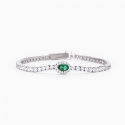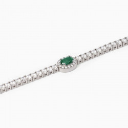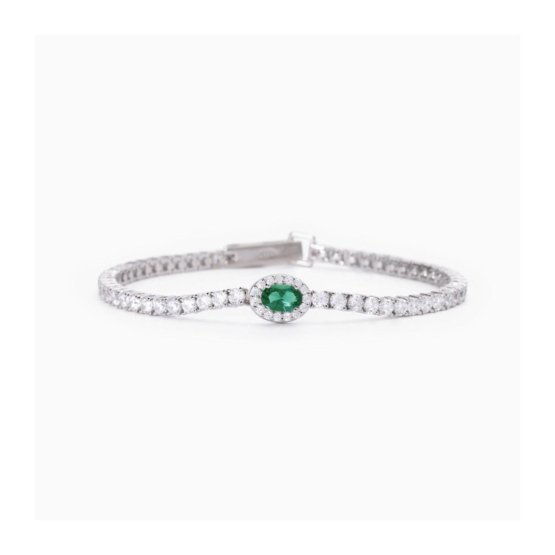 Descrizione: Bracciale tennis da donna in argento 925 rodiato con pietra sintetica ovale e zirconi bianchi.