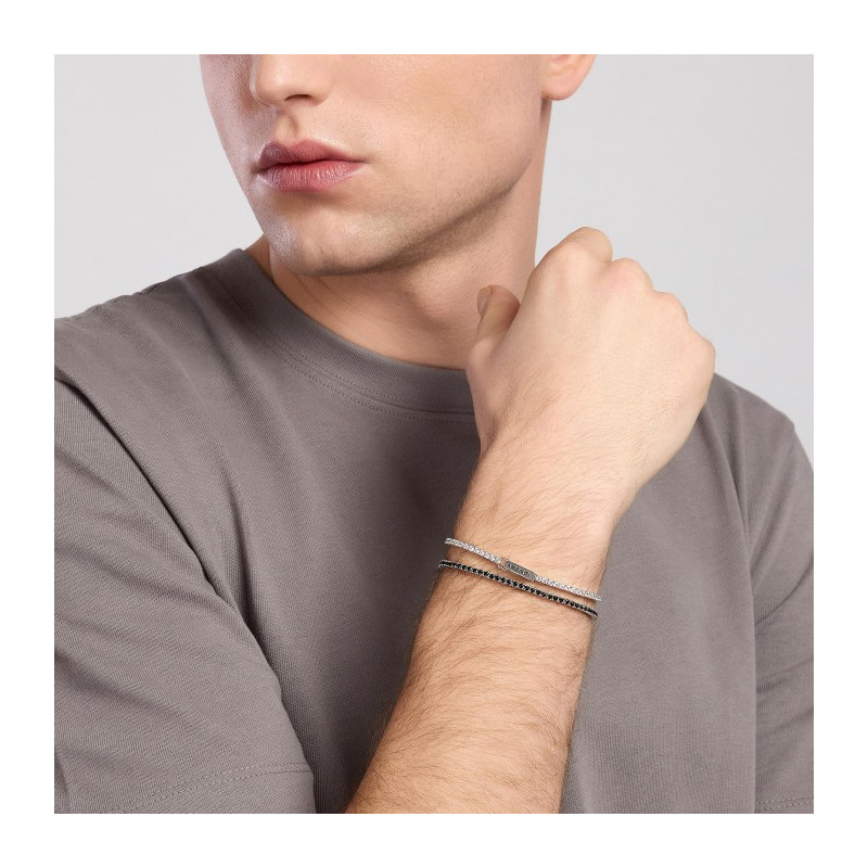 Descrizione: Bracciale tennis da uomo in argento 925 rodiato con zirconi. Diametro zirconi: 2 mm. Chiusura a pinza con molla