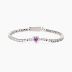 Descrizione: Bracciale tennis da donna in argento 925 rodiato con pietra sintetica centrale taglio cuore e zirconi bianchi.