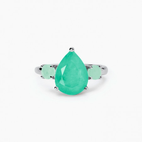 Descrizione: Anello regolabile da donna in argento 925 rodiato con fusion stone di glass azzurro e cristallo di rocca taglio goccia, e glass azzurro taglio tondo.