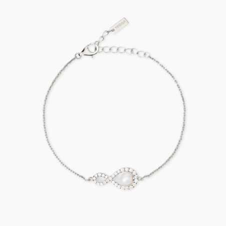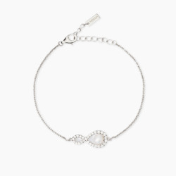 Descrizione: Bracciale con catena forzatina e infinito in zirconi e/o perla. Regolabile da 16 a 19 cm