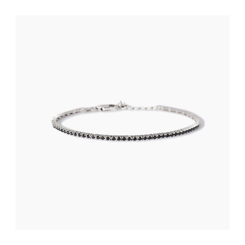 Descrizione: Bracciale regolabile tennis da uomo in argento 925 rodiato con zirconi. Diametro zirconi: 1,5 mm. Chiusua con moschettone