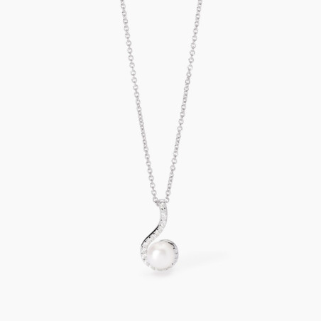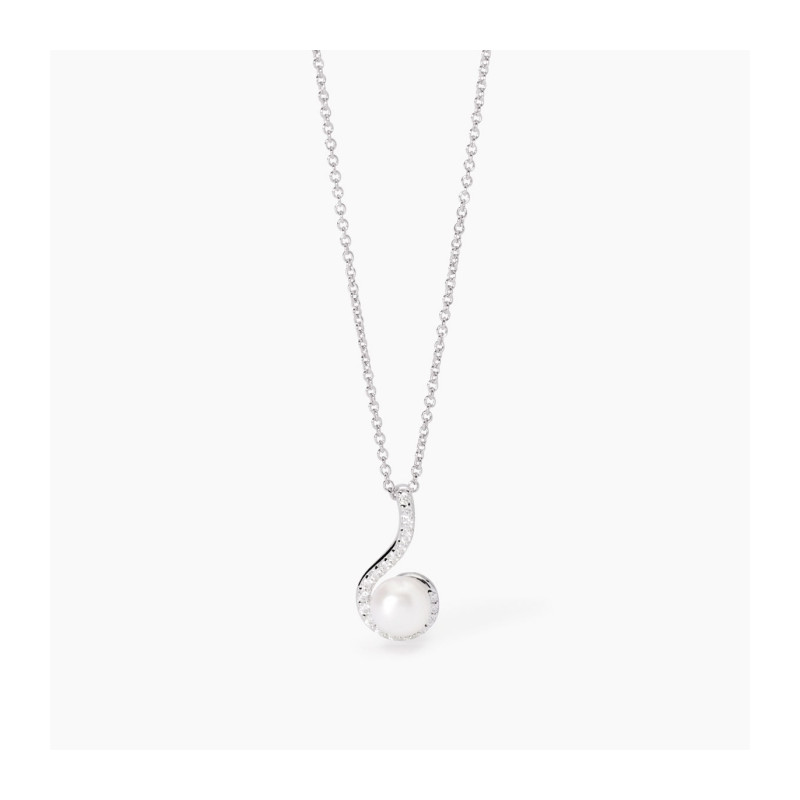 Descrizione: Girocollo regolabile da donna in argento 925 con catena forzatina e pendente a forma di amo con perla bottone coltivata e zirconi.