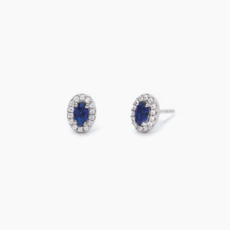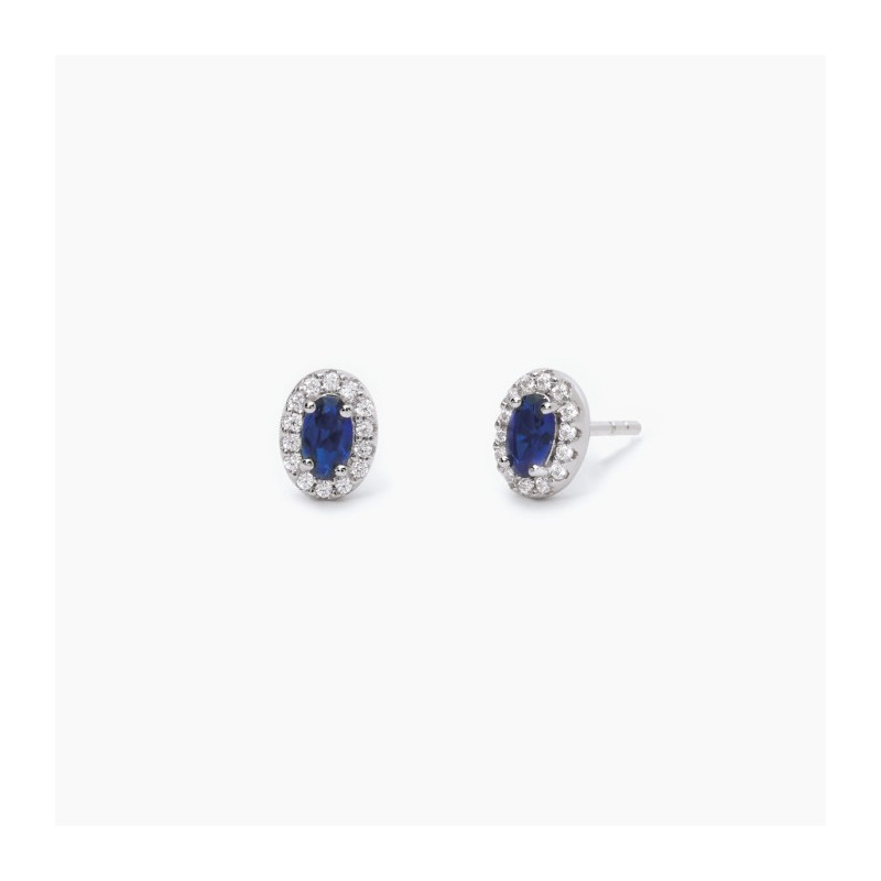 Descrizione: Orecchini a lobo in argento 925 con pietre sintetiche taglio ovale circondati da zirconi bianchi.
