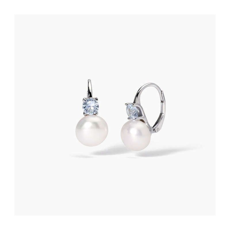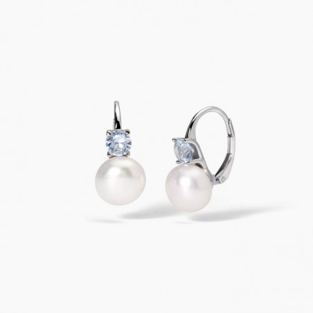 Descrizione: Orecchini da donna a monachella in argento 925 rodiato/pvd con perle coltivate e pietra sintetica.