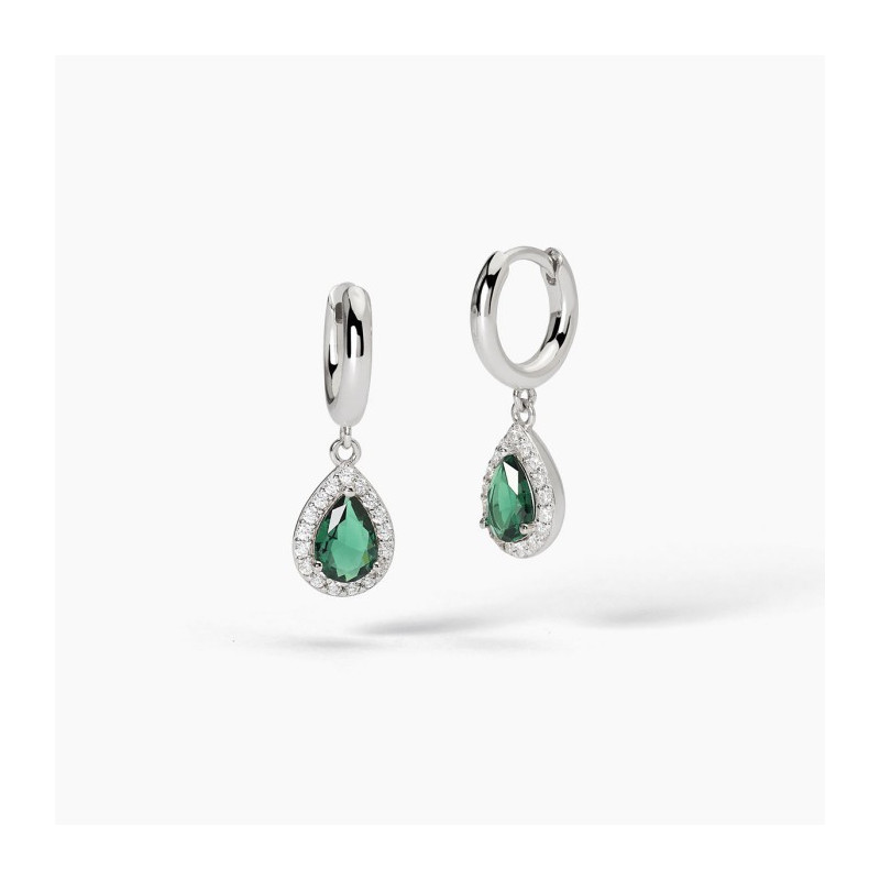 Descrizione: Orecchini a cerchio in argento 925 con pietre sintetiche pendenti taglio goccia circondati da zirconi bianchi.