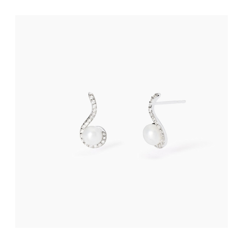 Descrizione: Orecchini a lobo da donna in argento 925 con perla bottone coltivata e zirconi.