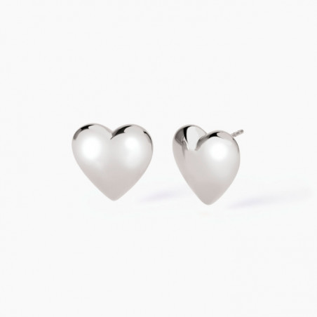 Descrizione: Orecchini a lobo da donna in argento 925 rodiato a forma di cuore.