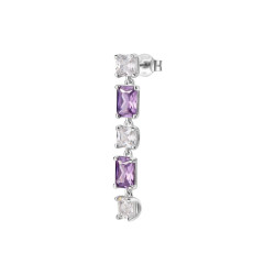 Descrizione: orecchino mono pendente in argento 925 rodiato e cubic zirconia taglio baguette e taglio square