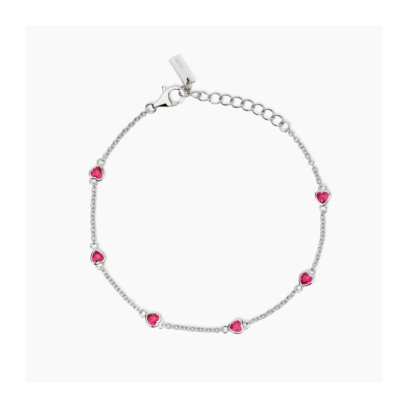 Descrizione: bracciale in argento 925 rodiato con catena rolò 1,5 mm e rubini sintetici taglio cuore 3 x 3 mm.