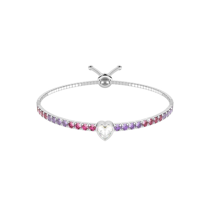 Descrizione: bracciale in acciaio 316L con catena veneta, zircone centrale taglio cuore, tennis di cristalli colorati degradè. Frase a corredo: Avrei un milione di cose da dirti ma posso riassumerle tutte in tre parole: Ti voglio bene. Dimensioni: catena 1,75 mm, zircone 6 x 6 mm, cristalli fi 3 mm.