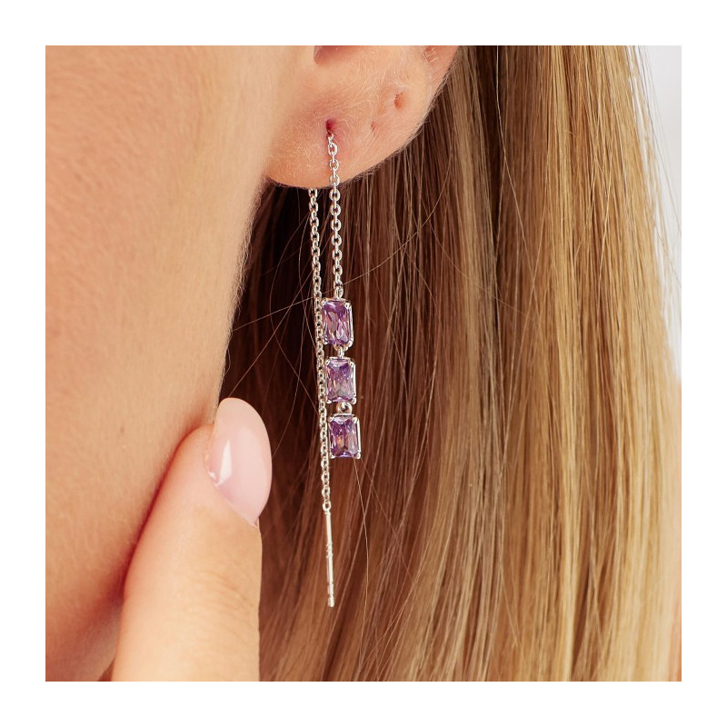 Descrizione: orecchino mono pendente saliscendi in argento 925 rodiato e cubic zirconia taglio baguette