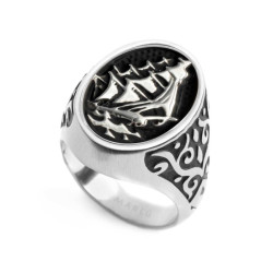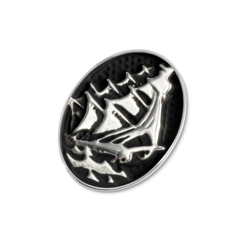 Descrizione: Piastrina ovale per anello in acciaio con black oil opaco, veliero in rilievo. Sul retro logo Marlù inciso. Materiali: acciaio, black oil