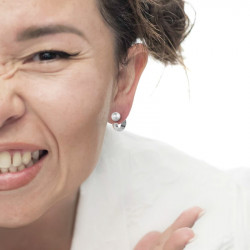 Descrizione: Mono orecchino acciaio a cerchio aperto fi 1,8 cm chiusura aggiuntiva perla a bottone fi 10 mm