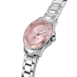 Descrizione: Orologio 3H con data. Fondello a vite. Vetro minerale. Cassa e bracciale in acciaio con cinturino in nylon. Lunetta in alluminio.