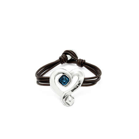Descrizione: bracciale metallo placcato 15 micron e cuoio multifilo - centrale a forma di cuore con cristallo ottagonale - chiusura a bottone