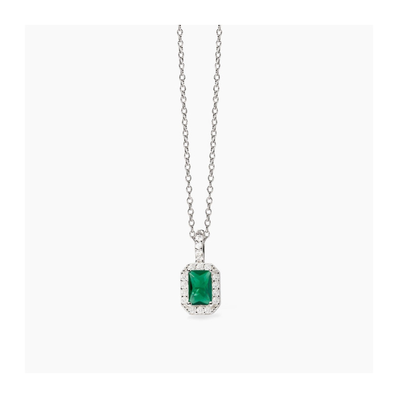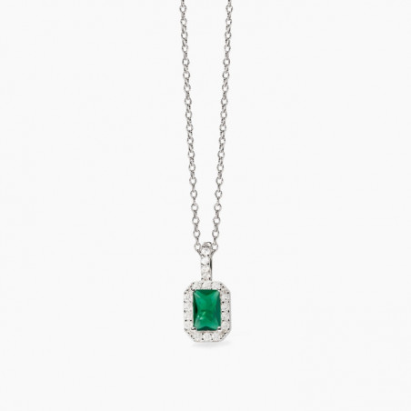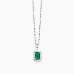 Descrizione: girocollo in argento 925 rodiato con catena rolò 1,2 mm e pendente ottagonale 7 x 9 mm con zirconi taglio baguette 4 x 6 mm e fi 1,25 mm. Misura regolabile da 38 a 42 cm