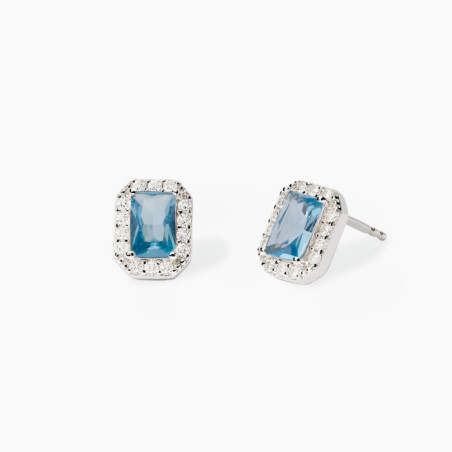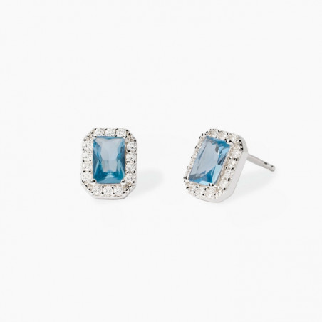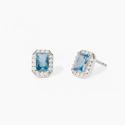 Descrizione: orecchini a lobo in argento 925 rodiato di forma ottagonale 7 x 9 mm con zirconi taglio baguette 4 x 6 e fi 1,25 mm. Dimenzione: h 15 mm
