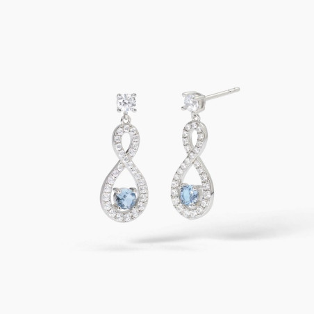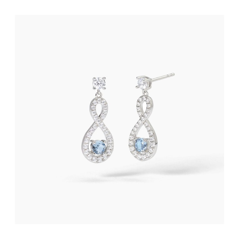 Descrizione: Orecchini in argento 925 con pendente a forma di infinito, pietra sintetica e zirconi bianchi e/o perla - misura: 9,5x18 mm