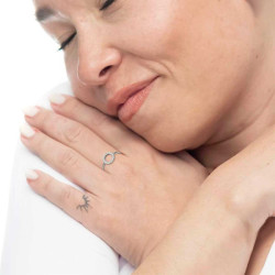 Descrizione: Anello in acciaio a fascetta con elemento a cerchio con cubic zirconia. Nella parte interna vicino all' infinito laserato il logo Marlù e nella parte inferiore è incisa la scritta "SPARKLE forever". Materiale: acciaio, cubic zirconia