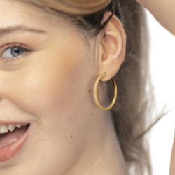 Descrizione: mono orecchino in acciaio a cerchio fi 32,0 mm con cubic zirconia. Logo Marlù laserato sulla chiusura.