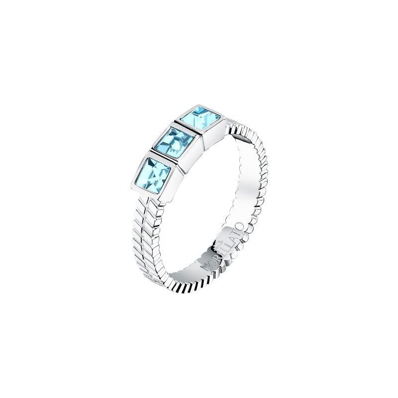 Descrizione: anello trilogy in acciaio con cubic zirconia taglio square