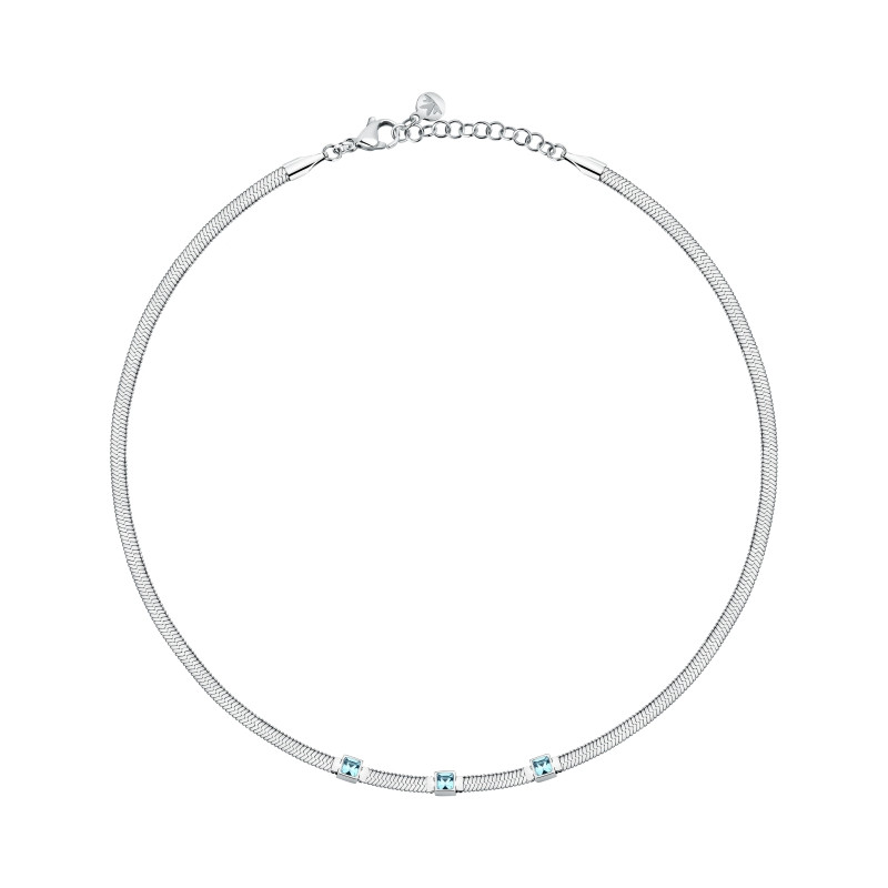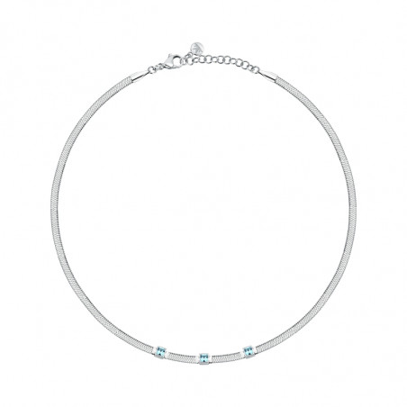 Descrizione: collana in acciaio con catena flat snake e tre cristalli taglio square al centro