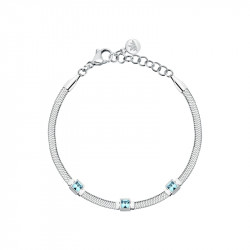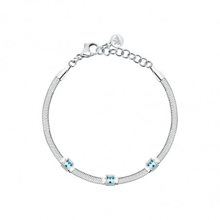 Descrizione: bracciale in acciaio con catena flat snake e tre cristalli taglio square al centro