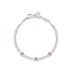 Descrizione: bracciale in acciaio con catena flat snake e tre cristalli taglio square al centro