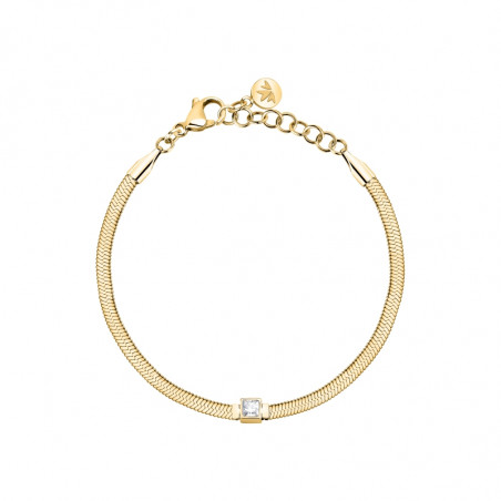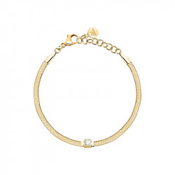 Descrizione: bracciale in acciaio con catena flat snake e cristallo taglio square al centro