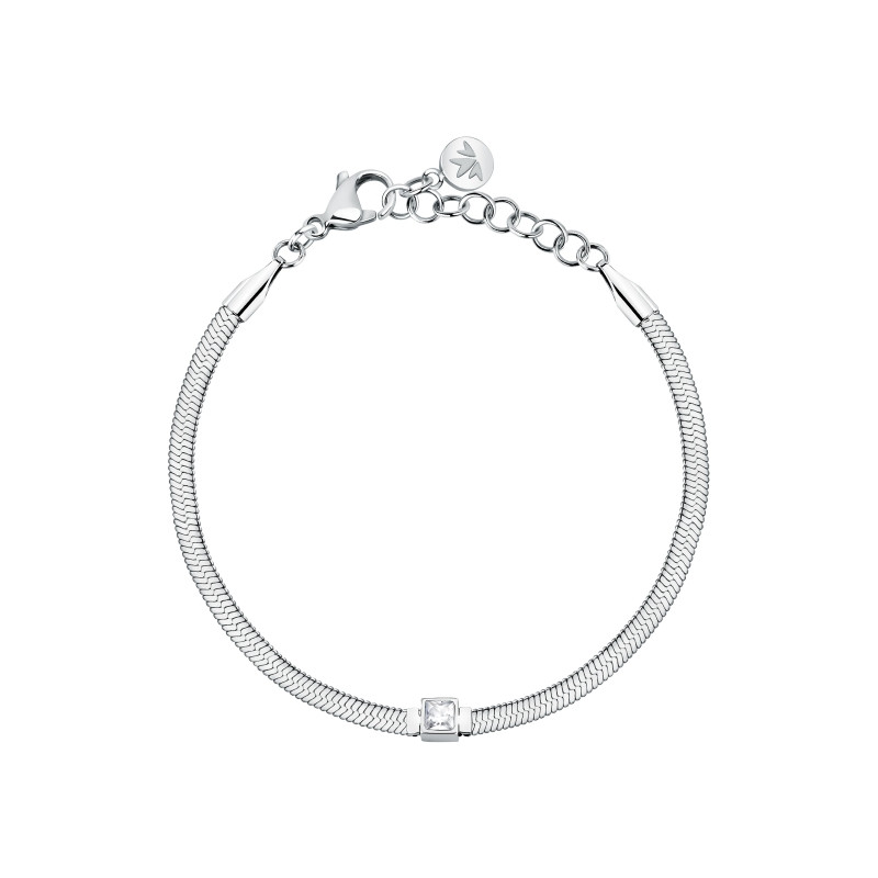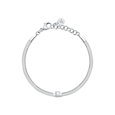 Descrizione: bracciale in acciaio con catena flat snake e cristallo taglio square al centro