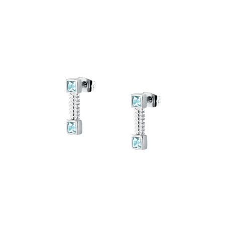 Descrizione: orecchini pendenti in acciaio con catena flat snake e cristalli taglio square