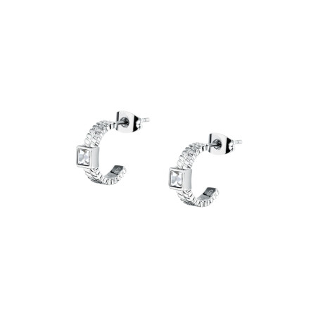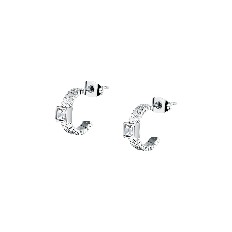 Descrizione: orecchini a semi-cerchio in acciaio con cristalli taglio square