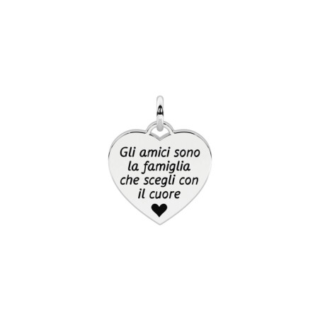 Descrizione: Ciondolo in acciaio 316L satinato cuore. Scritta: Gli amici sono.. Dimensioni: ciondolo 15x15.2 mm