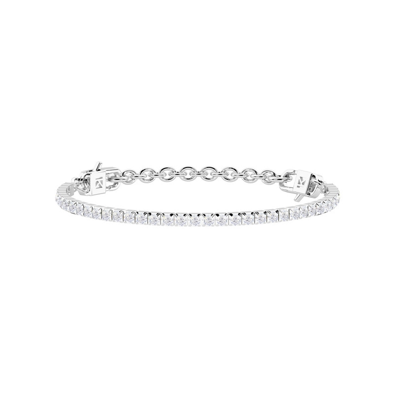 Descrizione: Bracciale tennis in acciaio 316L, misura regolabile sistema "COMFORT FIT" (16 cm / 17.5 cm / 19 cm), con cristalli. Dimensioni: pietre fi 2.5 mm