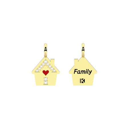 Descrizione: Ciondolo in acciaio 316L casa smaltato con cristalli. Scritta: Family. Dimensioni: 10x10.2 mm, pietre fi 1.25 e 1 mm