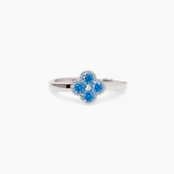 Descrizione: Anello in argento 925 con soggetto quadrifoglio 9x9 mm e zirconi fi 3 mm, misura regolabile da 11 a 20