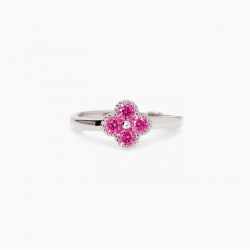 Descrizione: Anello in argento 925 con soggetto quadrifoglio 9x9 mm e zirconi fi 3 mm, misura regolabile da 11 a 20