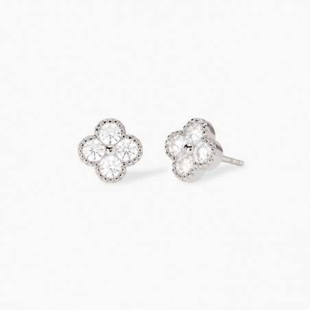 Descrizione: Orecchini in argento 925 9x9 mm quadrifoglio con zirconi colorati fi 3 mm