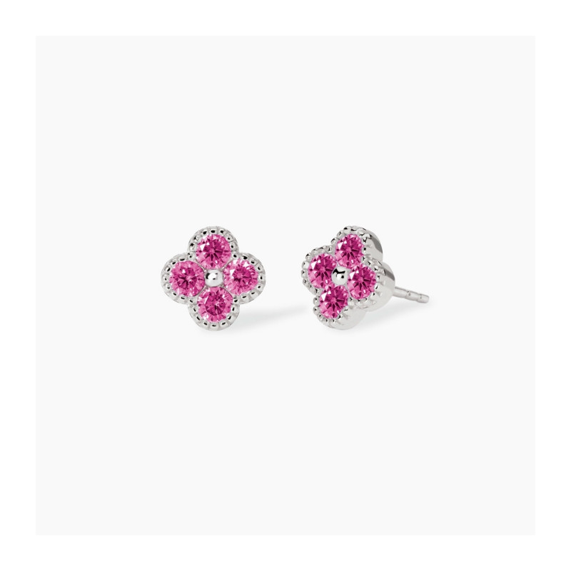 Descrizione: Orecchini in argento 925 9x9 mm quadrifoglio con zirconi colorati fi 3 mm