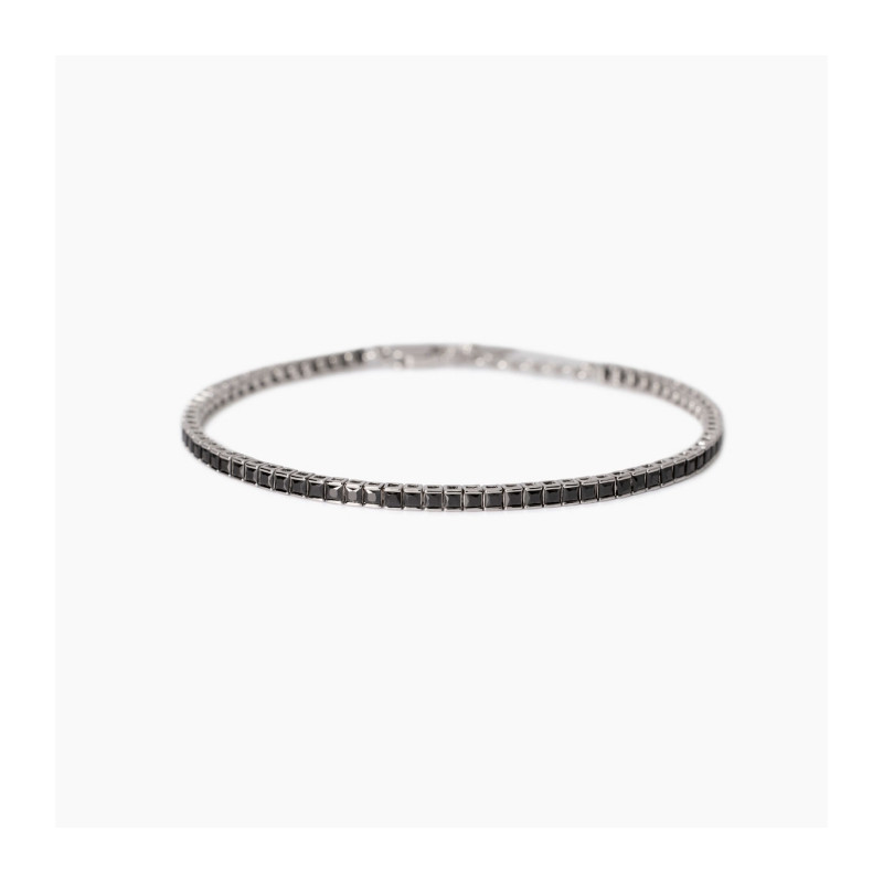 Descrizione: Bracciale tennis in argento 925 rodiato con zirconi 2x2 mm taglio princess, lunghezza regolabile da 18 a 20 cm