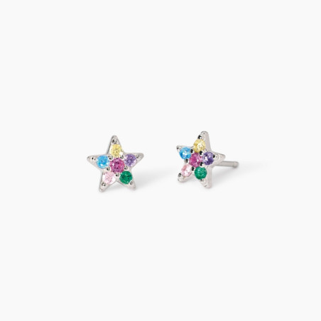 Descrizione: Orecchini in argento 925 stella 8x8 mm con tormaline rosa sintetiche e zirconi multicolor fi 2 mm