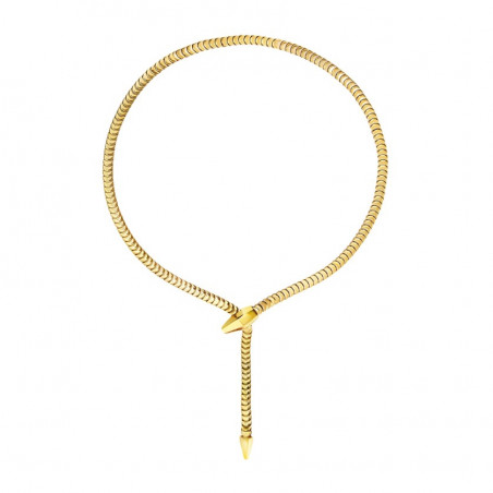 Descrizione: La collana semirigida Hypnotic, realizzata in acciaio lucido, incanta con il suo design sinuoso ispirato al serpente. Caratterizzata da una testa sfaccettata che funge da chiusura e da una coda geometrica, unisce audacia e carattere in un accessorio unico. Perfetta per chi ama i dettagli distintivi e uno stile che non passa inosservato.