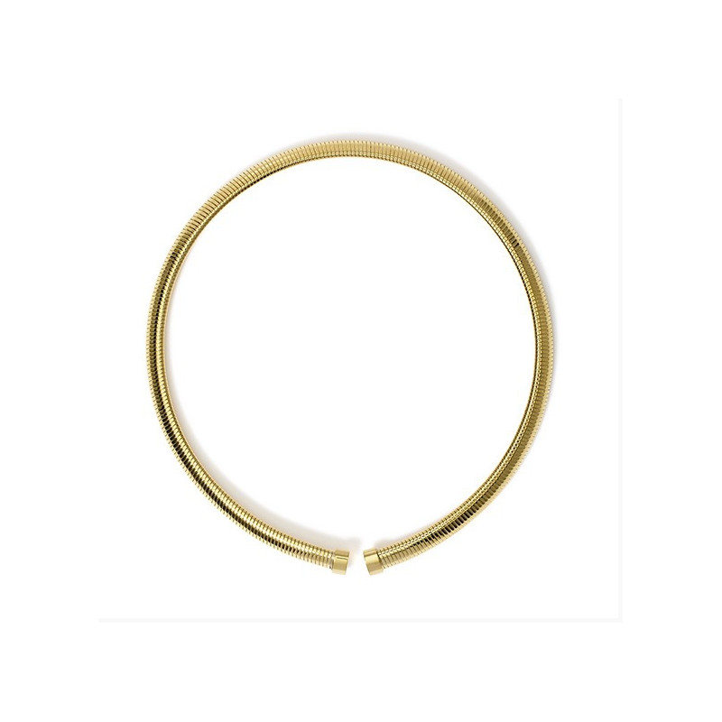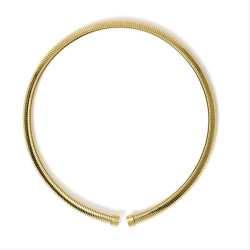 Descrizione: Girocollo in acciaio 316L con maglia tubogas in acciaio 304 e cristalli. Dimensioni: fi interno girocollo 12.5 cm, tubogas 8 mm, pietre fi 1.25 mm