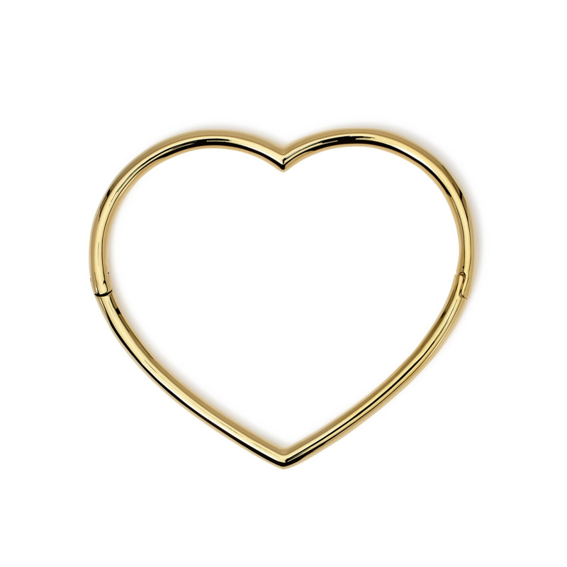 Descrizione: Bracciale bangle in acciaio 316L cuore. Dimensioni: interno bracciale 5.2x6.6 cm